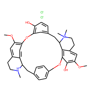 | Smiles: C[NH+]1CCC2=CC(=C3C=C2C1CC4=CC=C(C=C4)OC5=C6C(CC7=CC(=C(C=C7)O)O3)[N+](CCC6=CC(=C5O)OC)(C)C)OC.[Cl-].[Cl-] | |